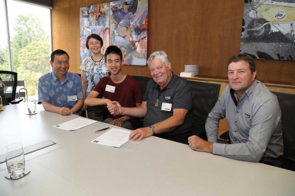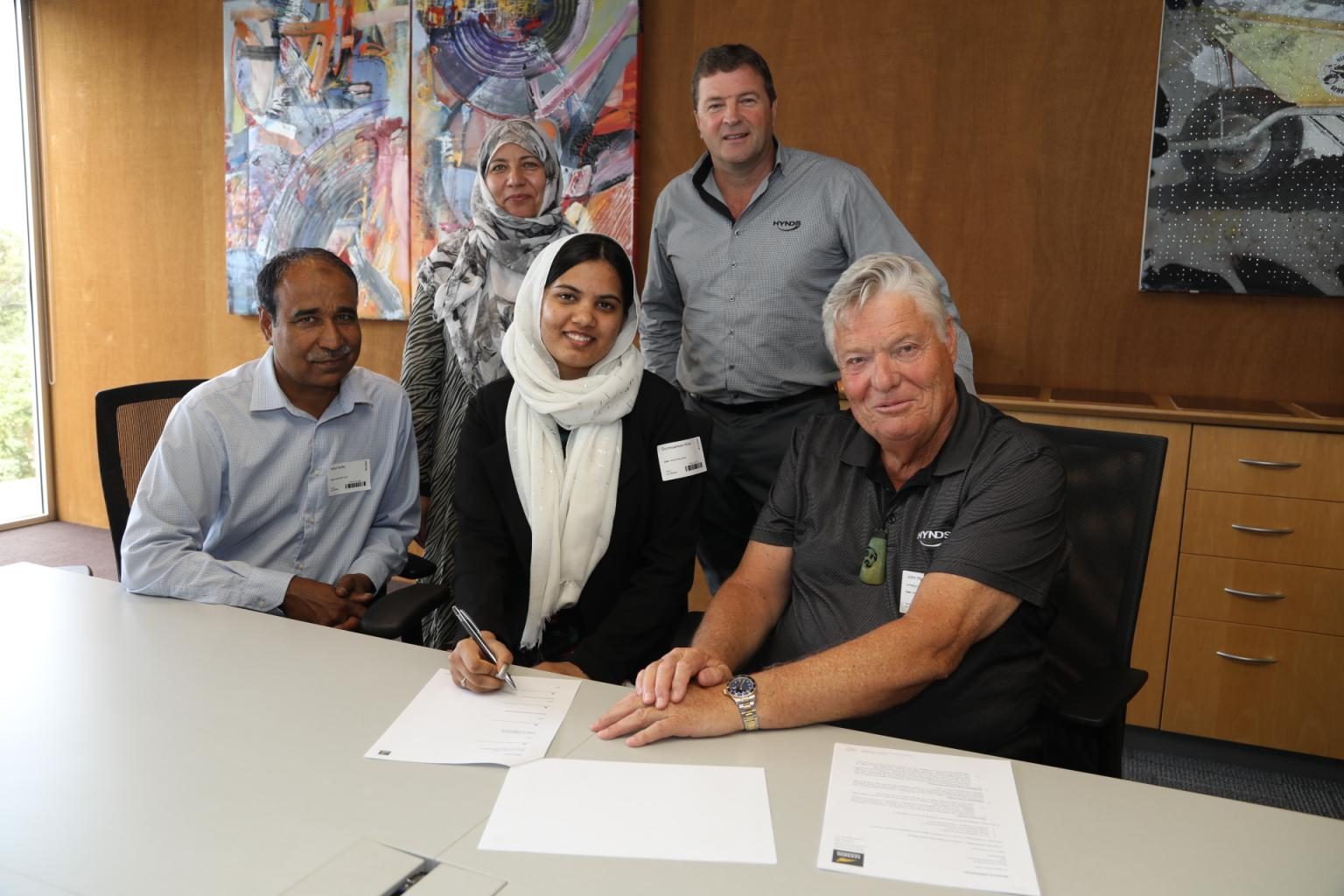 Hynds Group CEO, Andrew Moss and John Hynds were on hand February 3rd to congratulate the 2020 Manurewa High school recipients a Hynds Foundation Scholarship. Congratulations to John Chen and Durresameen Khan whose scholarships are for Bachelor of Engineering Degrees at the University of Auckland. The agreement signing was followed by an informal lunch with John and Durresameen’s parents, Leanne Gibson and Ambure Giborees (Manurewa Highschool Business Academy), Robyn Hynds (Hynds Foundation), Leonie Hynds (Founding Director), 2019 scholarship winner Tyler Ball, and other Hynds Senior Executives.
